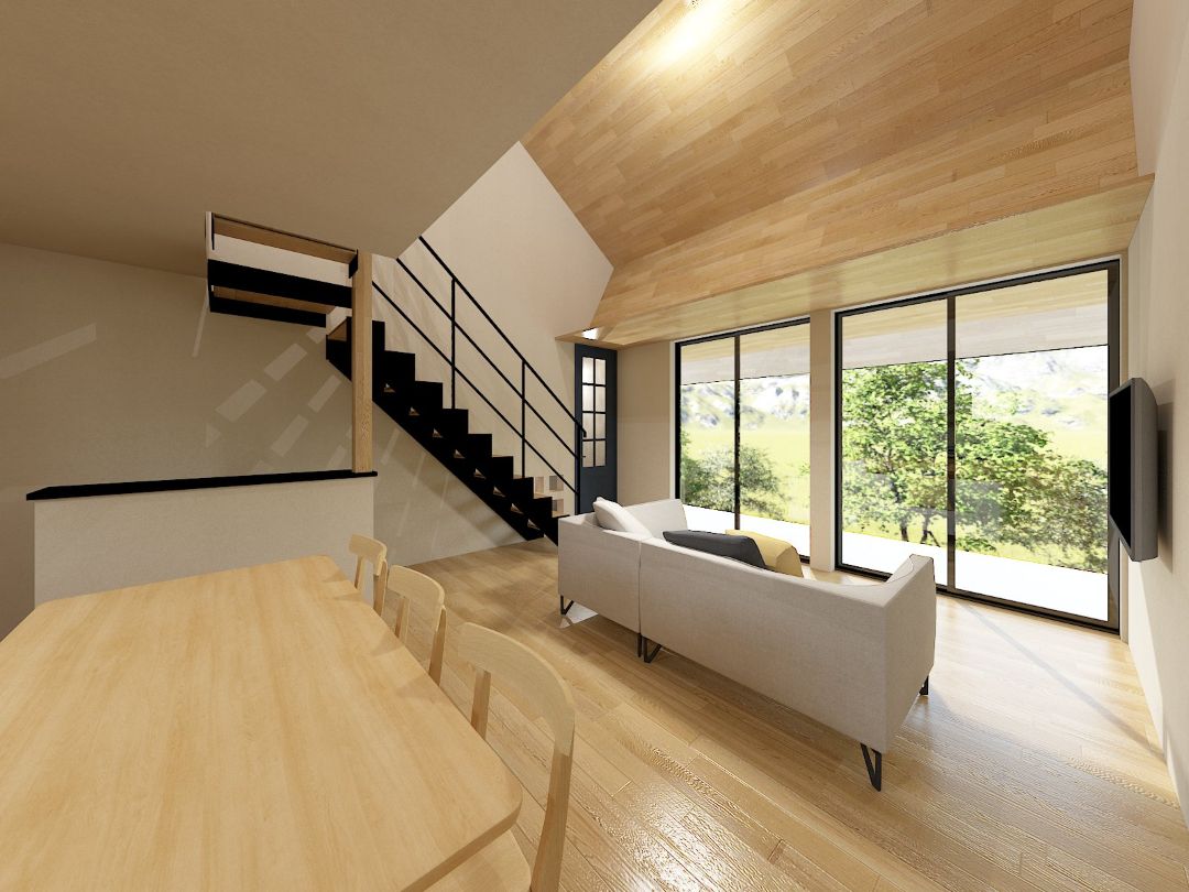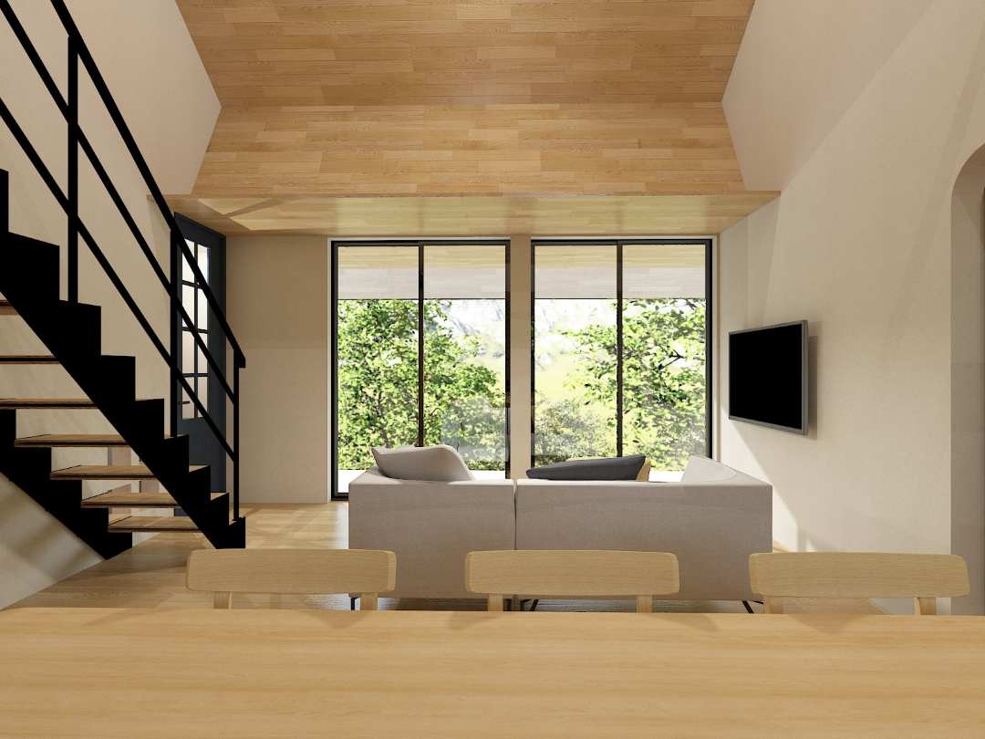 内と外が緩やかにつながる、ゆったりとしたリビングです。