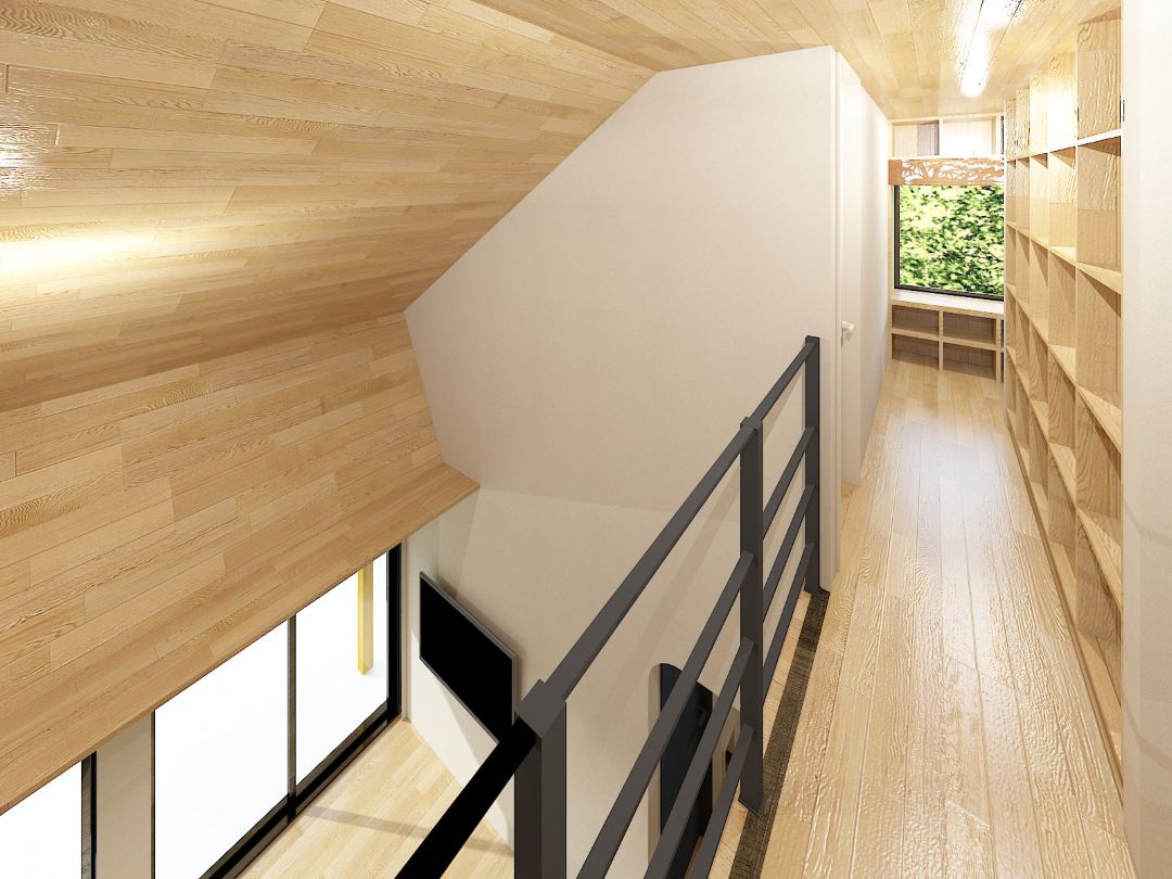 2階には、大きな造作棚と、ちょっと腰をかけたりできる ”ヌック”もあります(*^-^*)